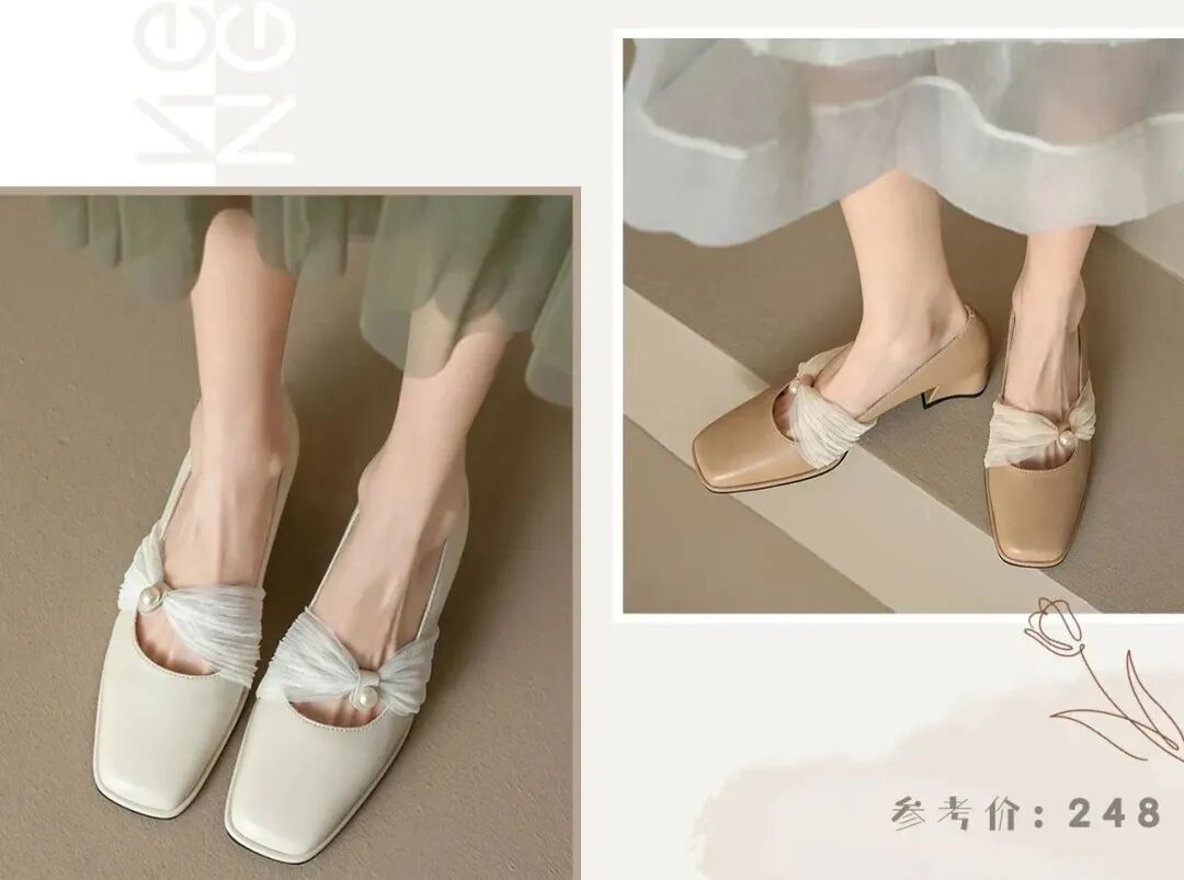 珍珠丝带元素用在玛丽珍上很时髦,上脚巨仙,搭配小裙子再合适不过了,精致女孩必备!