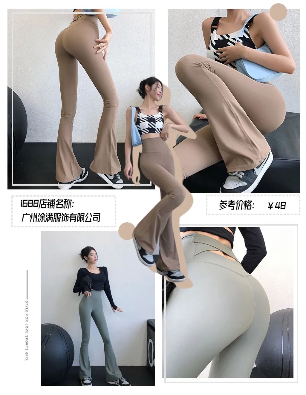这种微喇的瑜伽裤连女明星都入了同款!小腿粗的姐妹也不用担心了~后腰还有交叉绑带的设计,性感的小心机get!