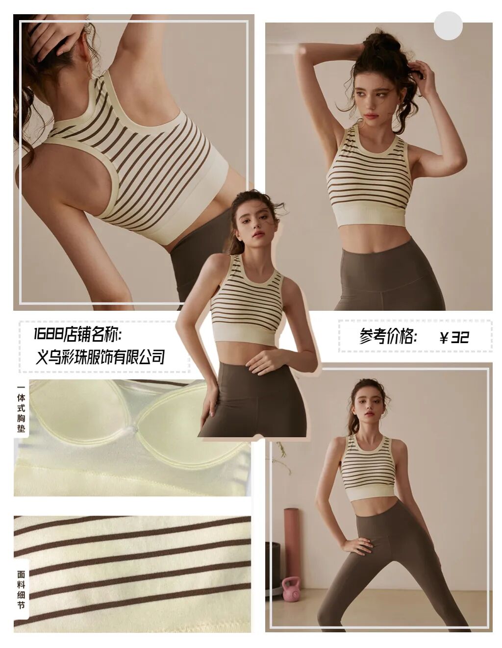 条纹背心在健身房里绝对是打破单调的穿搭,后背是简约的工字美背,解放肩胛骨,运动出街都好看!