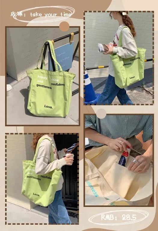 奇异果绿的帆布包~这个颜色和春天也太适配了,内里还有小侧袋设计,也不用担心小物件找不到~春游出门背这个,拍照绝对出片!