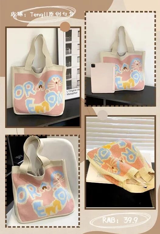 这款包包其实是针织的面料,摸起来比帆布包更柔软,粉嫩嫩的包身,温温柔柔的感觉太上头了!