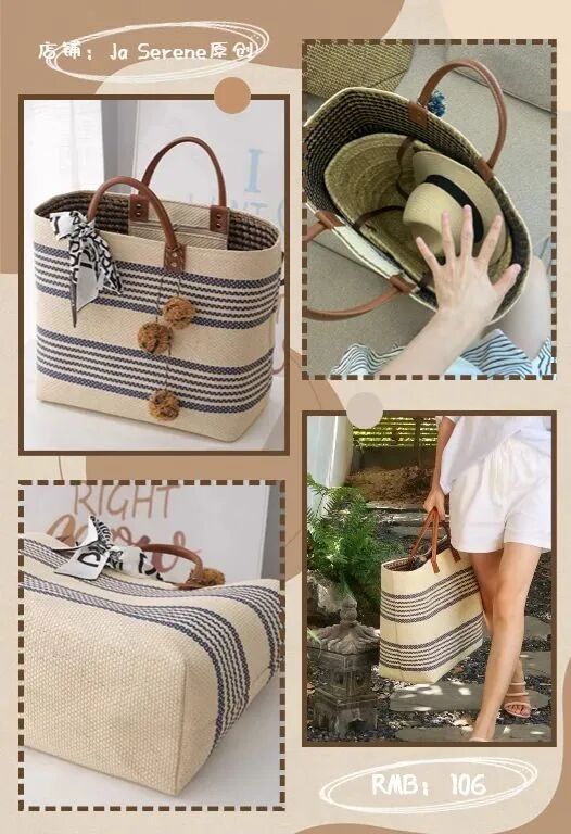 这款蓝白条纹的菜篮子容量真的大到超乎想象,日常有背电脑、专业书出门的姐妹放心冲!度假背一个也超能装~