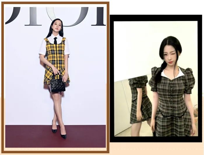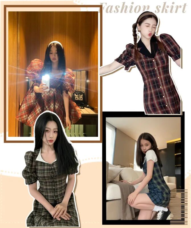 长裙优雅贵气;短裙俏皮可爱,更建议选择亮色格子裙,能很好地提亮气色。