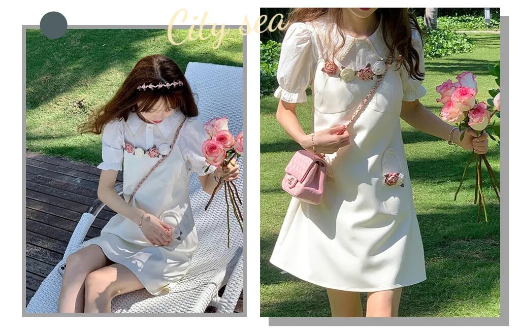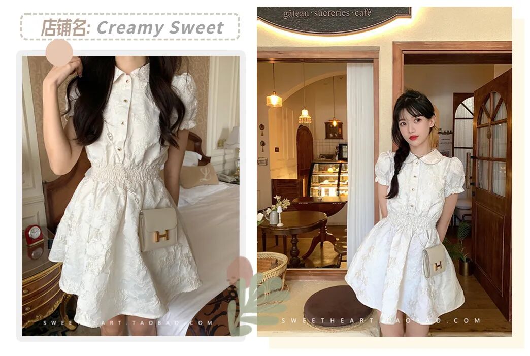 这种纯白小短裙乍一看很素,但仔细看还有一排小花在领口,太有邻家妹妹的感觉啦!