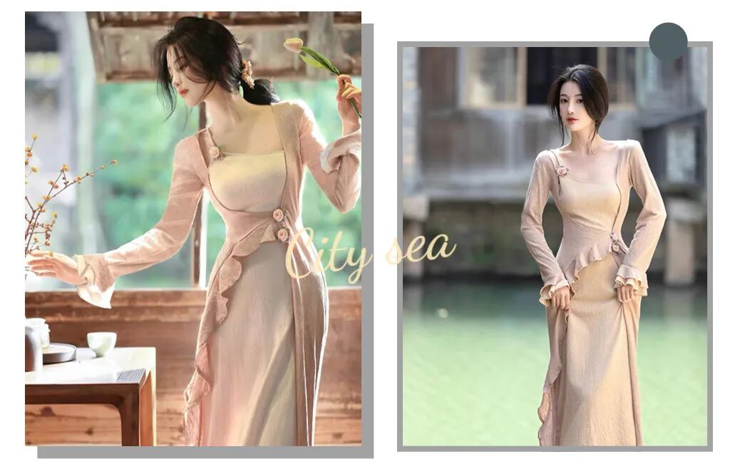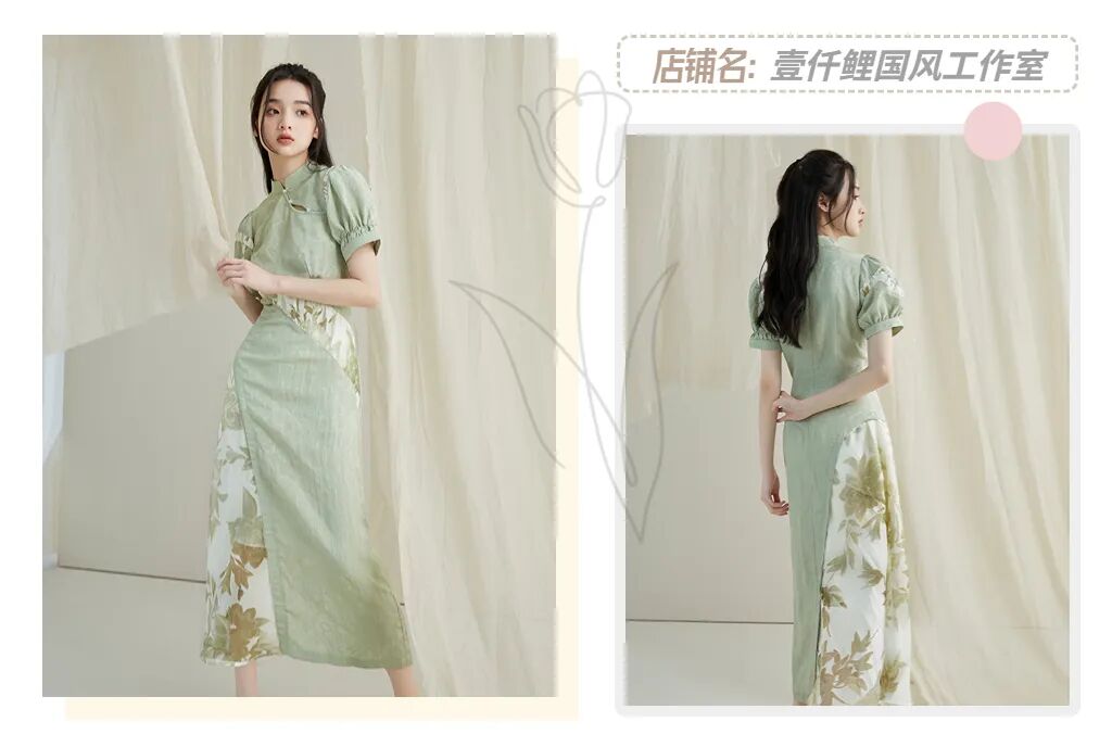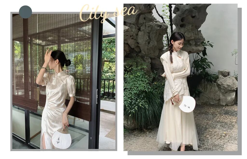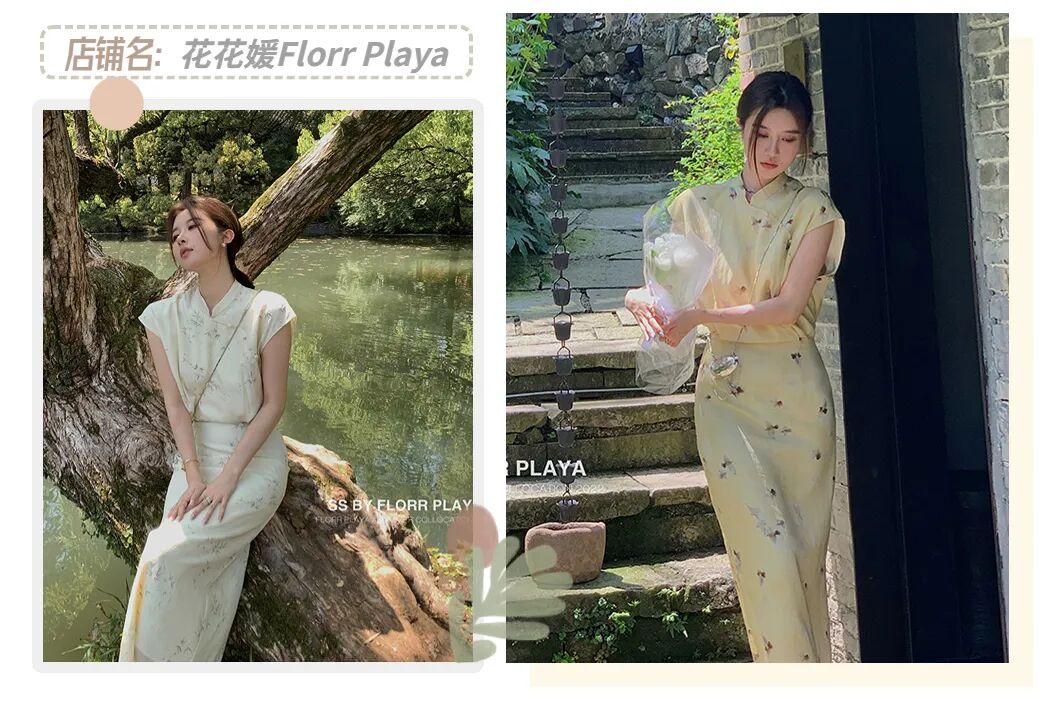 这两年新中式的设计做得越来越好看了,除了传统的旗袍款式,还有长裙款,更日常也对身材的包容度更高。