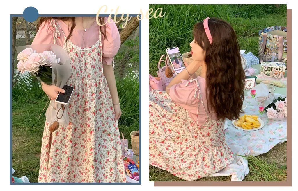粉色系的小裙子也是春游绝佳穿搭,有条件的可以带上一块反光板,随便抓拍就很绝~