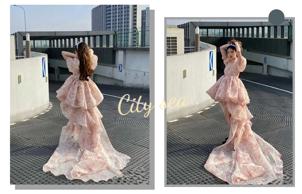 长拖尾的裙子也是惊艳感十足,如果担心入园时被保安拦住,可以先拿个皮筋把裙摆扎起来~
