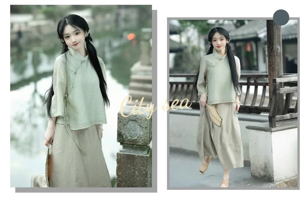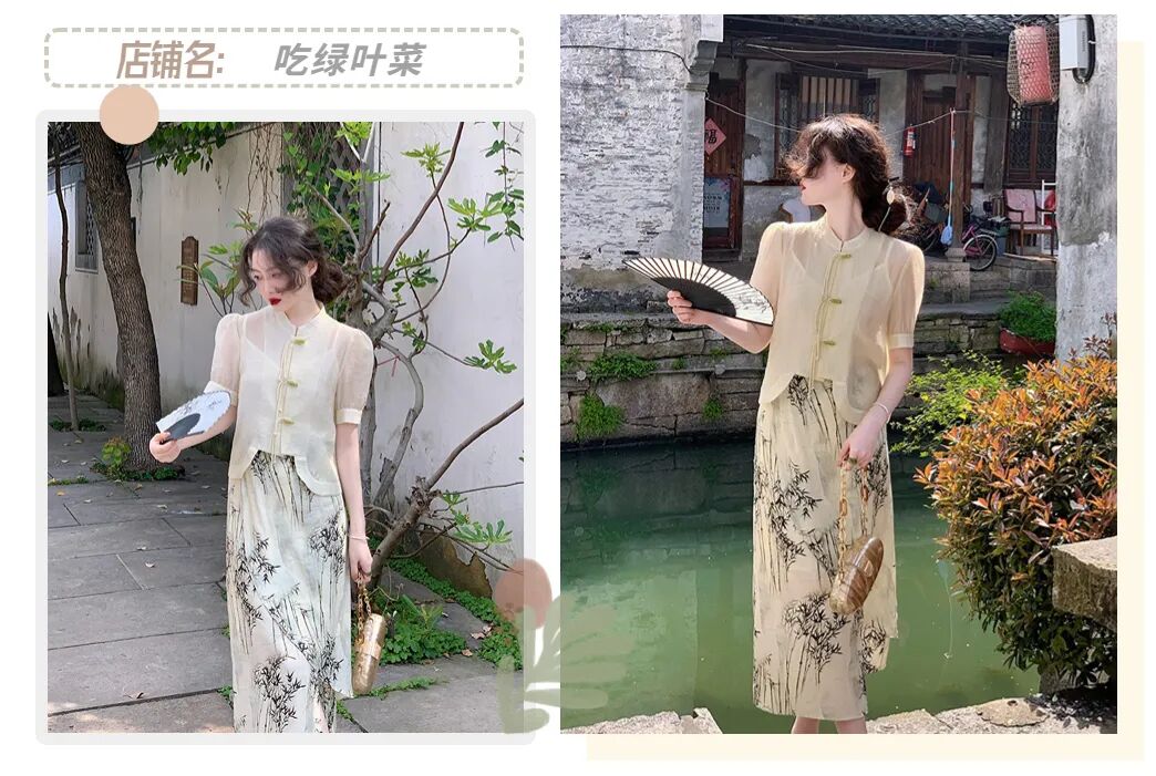 中式的裙子更多都是垂顺的,出游前一天可以稍微熨一下/挂起来,拍出来的质感也会很好!