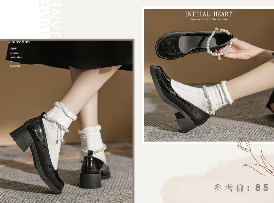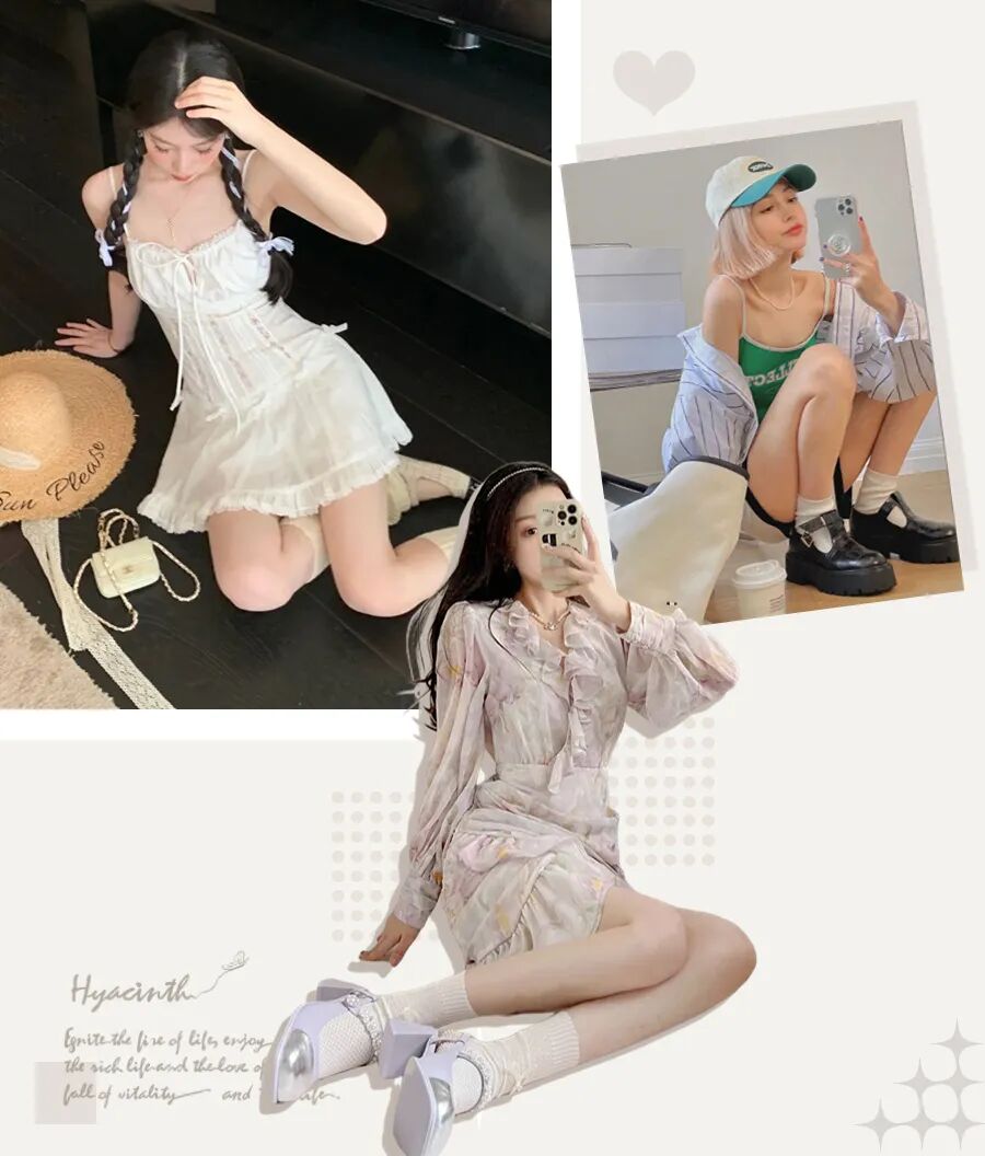 蕾丝白色短袜+玛丽珍的搭配也很经典,再加上娃娃领、小花边、蝴蝶结的加持,分分钟让你get到纯欲天花板的魅力!