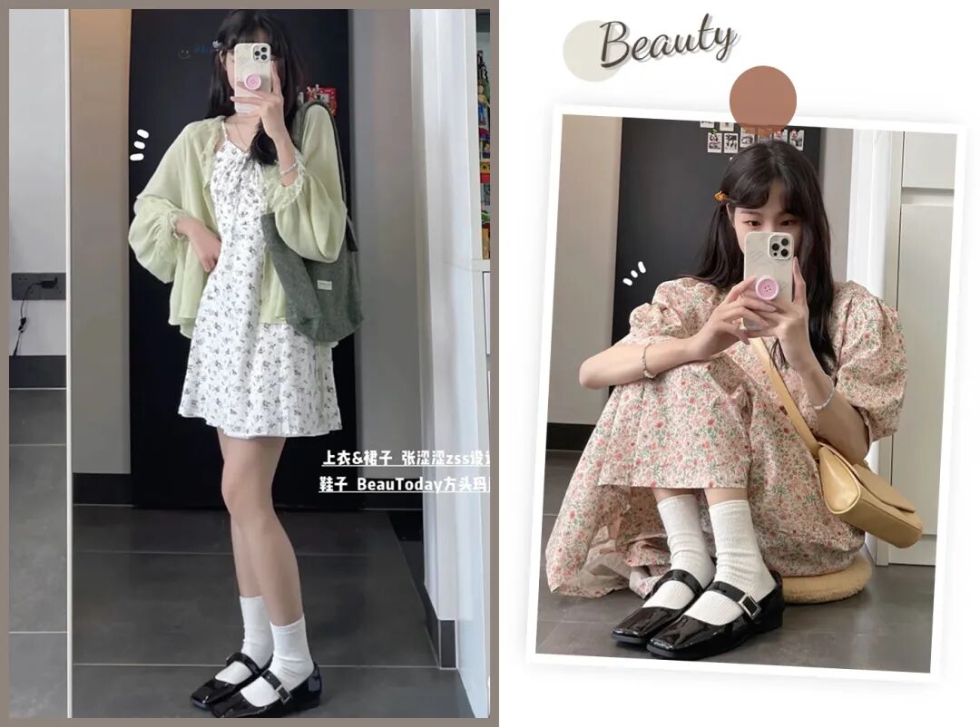 玛丽珍搭配淑女风的小裙子同样出彩,知性端庄,充满了岁月静好的温柔感。在色彩的选择上,要注意配色的呼应,这样看上去会更加和谐~