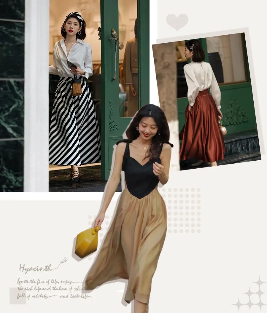 在衣服的选择上,一定要注意线条感的运用,比如利用半身裙的高腰设计衬出腰部的纤细,从而平衡掉法式穿搭的厚重感,简洁利落,又美又飒~
