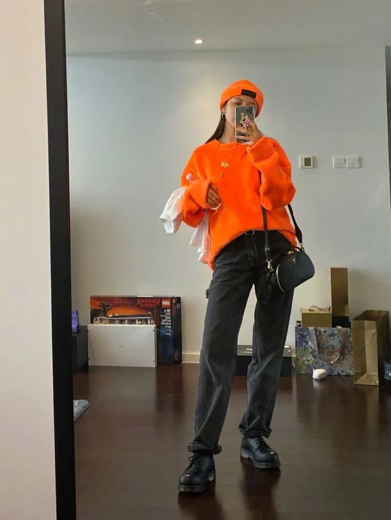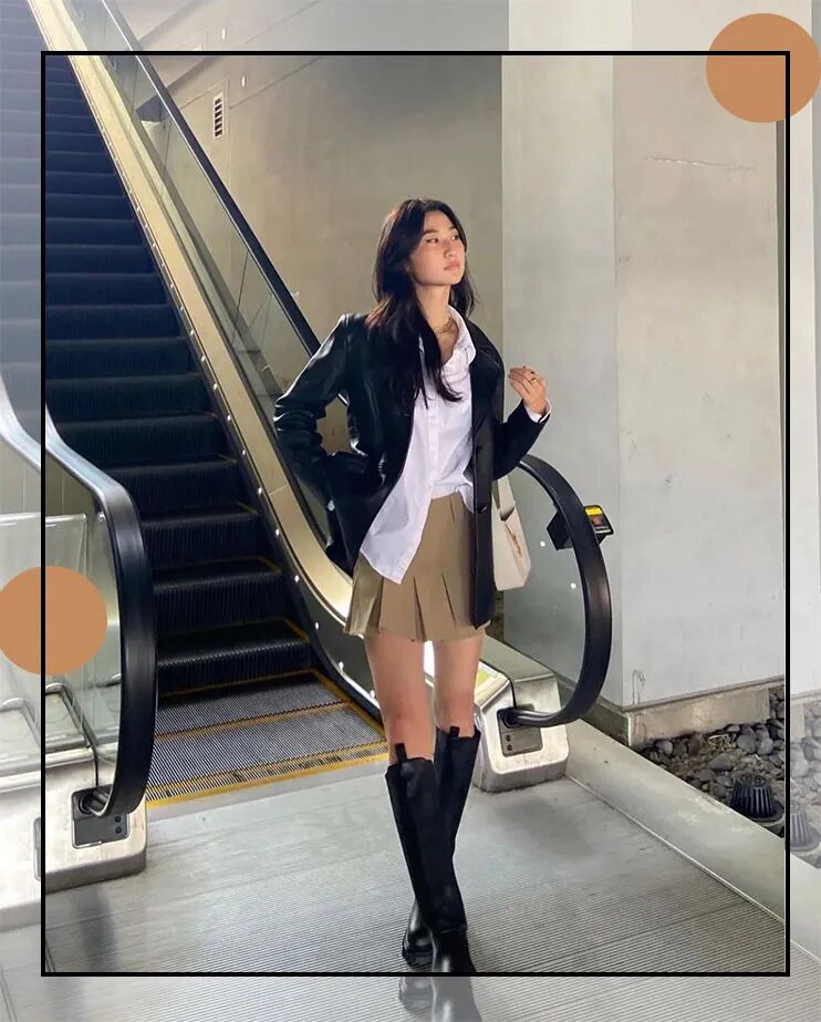 直筒靴在搭配上面也没有很大的限制,如果想要走酷酷的风格就可以选择短裤,上身卫衣、皮夹克都ok,酷酷的中性风拿捏了~