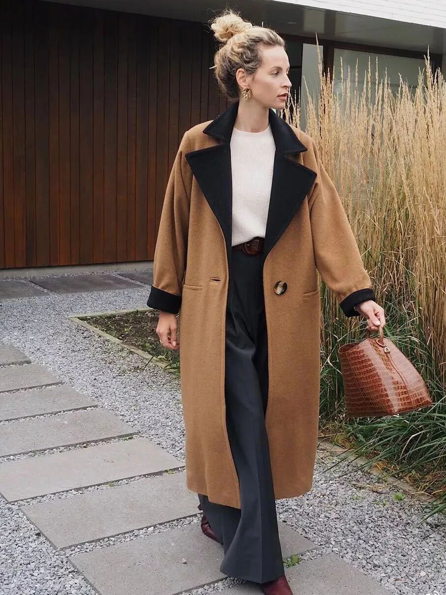 披上一件大衣,内里搭一件高领打底和版型硬挺的阔腿裤,飒爽帅气,走在街上就是最拽的那个崽。