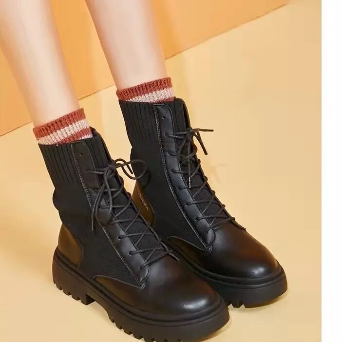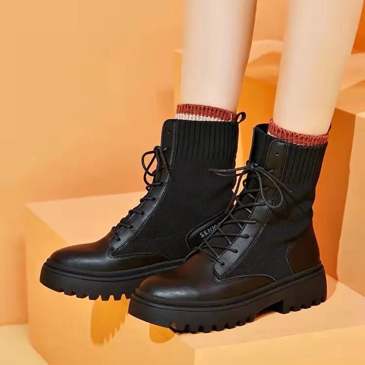 绑带款比马丁靴多了一些女人味,只要长度合适对于修饰腿型也是杠杠的,适合match一些学院风的短裙短裤,显嫩显瘦无敌了。