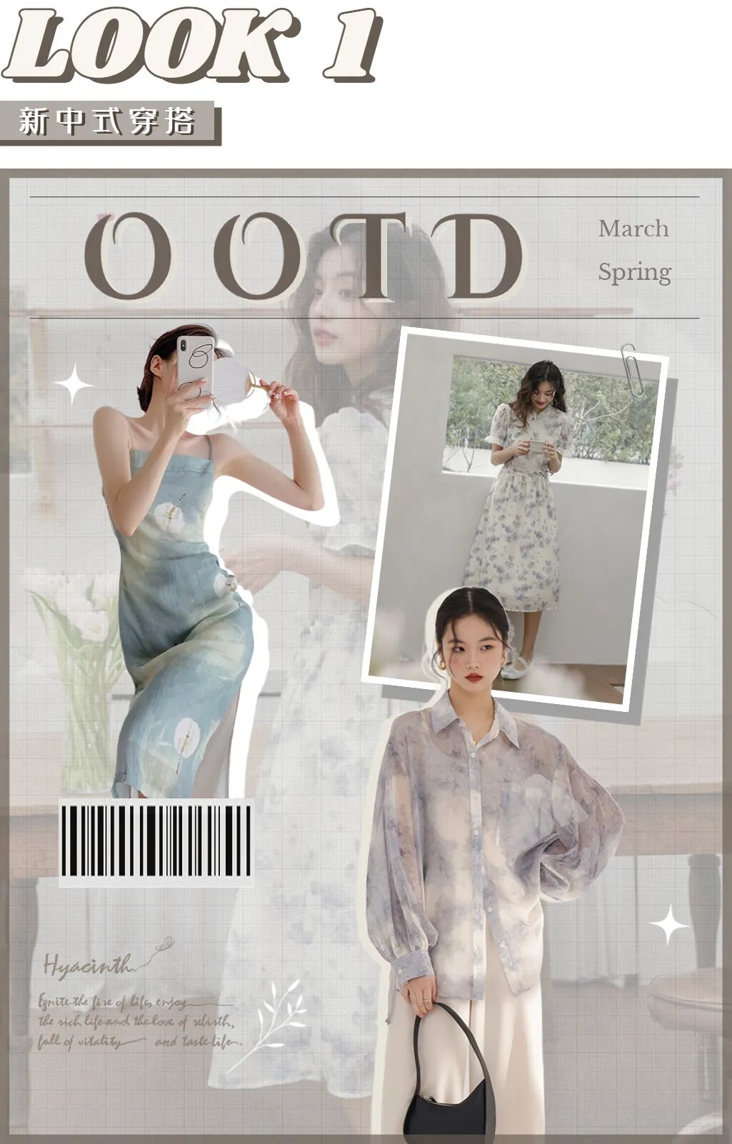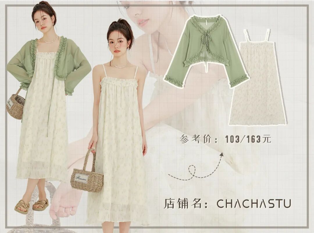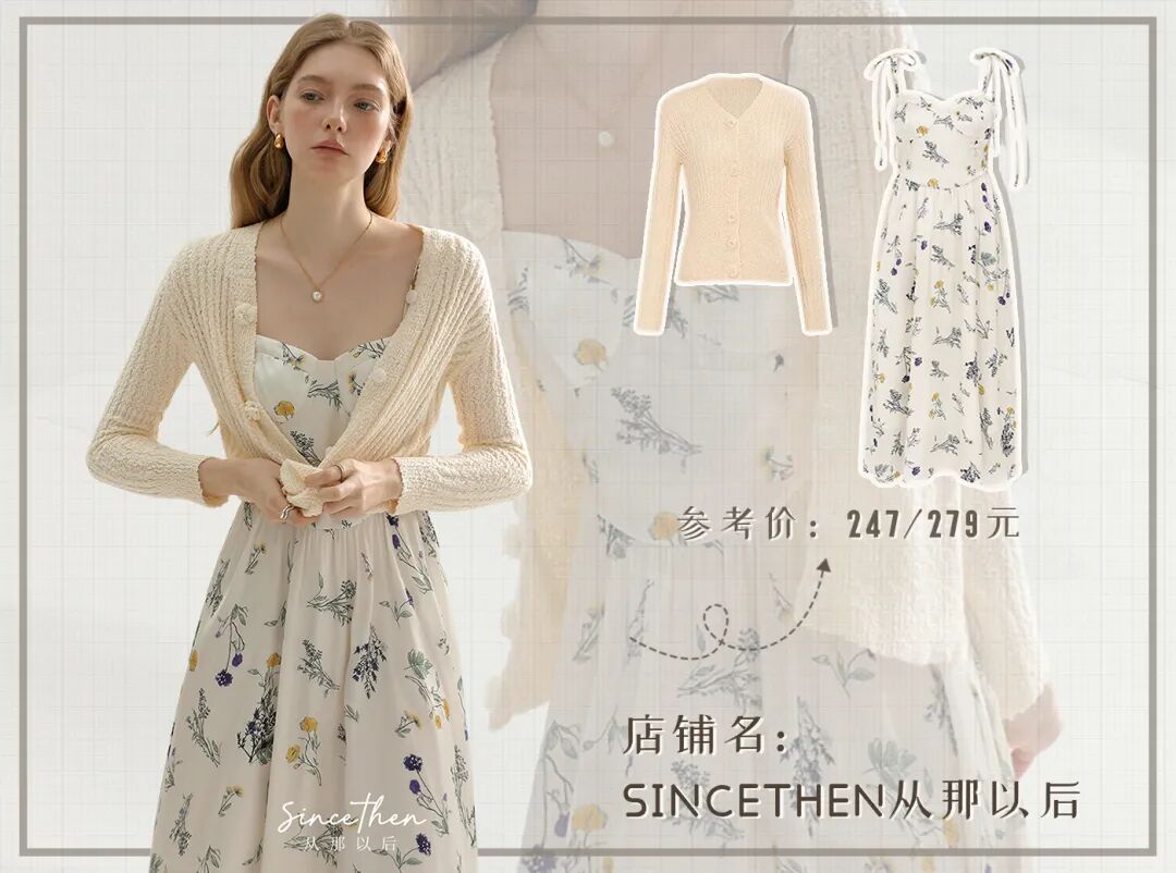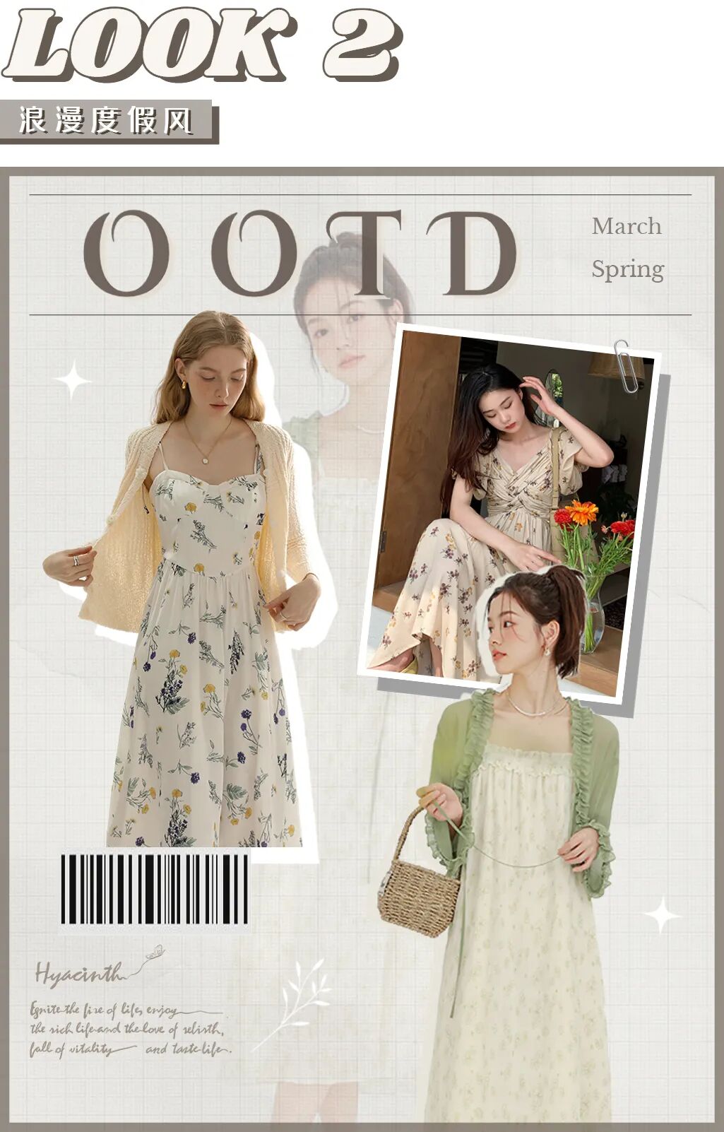 吊带裙+开衫的组合非常经典,古风印花吊带裙优雅别致,开衫外套温婉气质,两者组合在一起高级感十足,满是优雅的韵味。