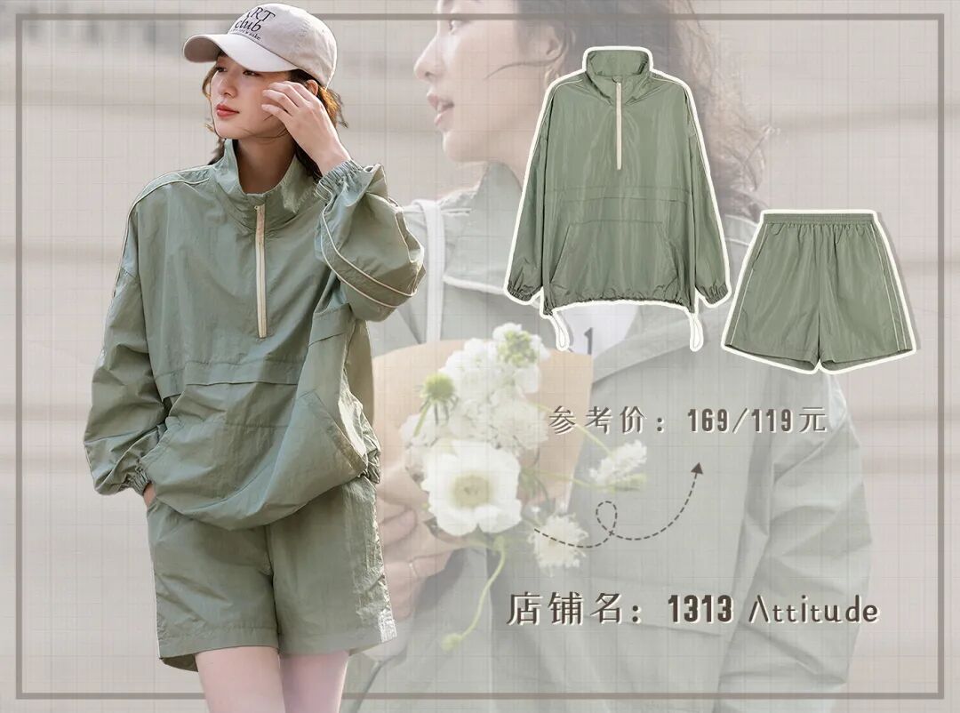 这套青灰绿运动套装也非常推荐,显白不挑皮、清新又治愈,拉链polp领设计增加了衣服的实穿性,可翻领也可立领,短裤的撞色包条和领口处的拉链完美呼应,分分钟就能让人感受到运动的时髦感~