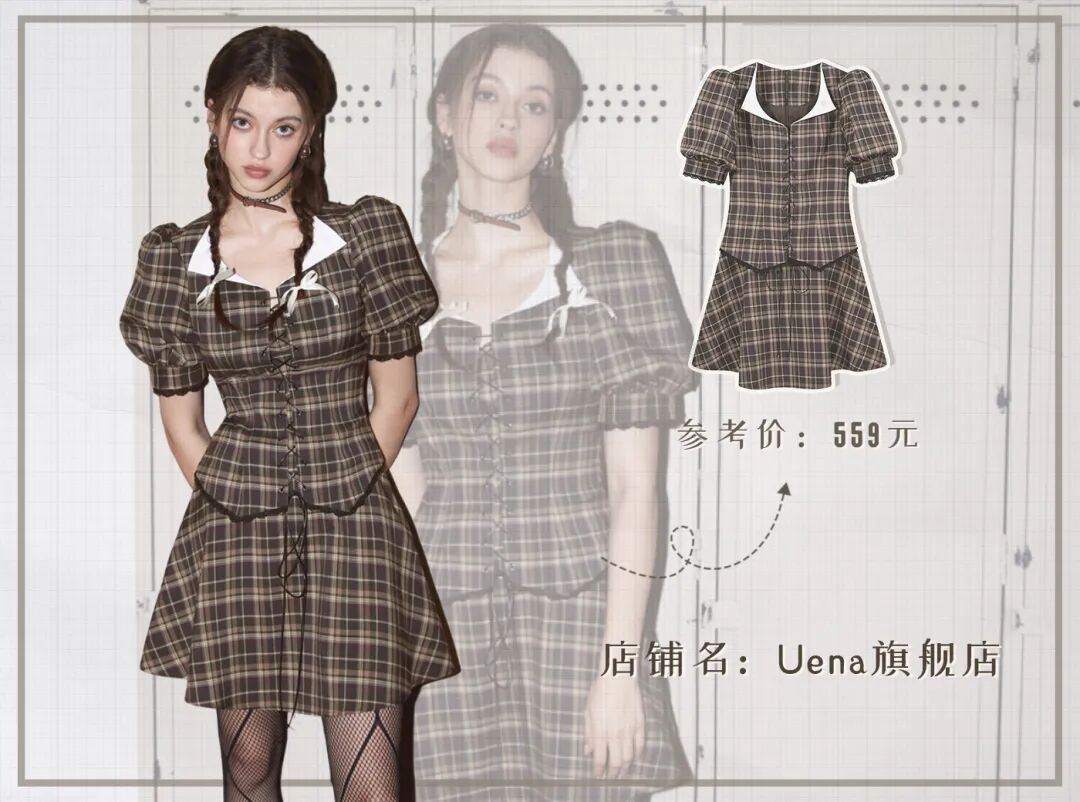 欣欣子同款格纹裙还有人不知道嘛?咖色系格纹经典复古,上身就是时尚高级感,泡泡袖设计遮肉又显瘦,减龄💯,满满的小巧思~