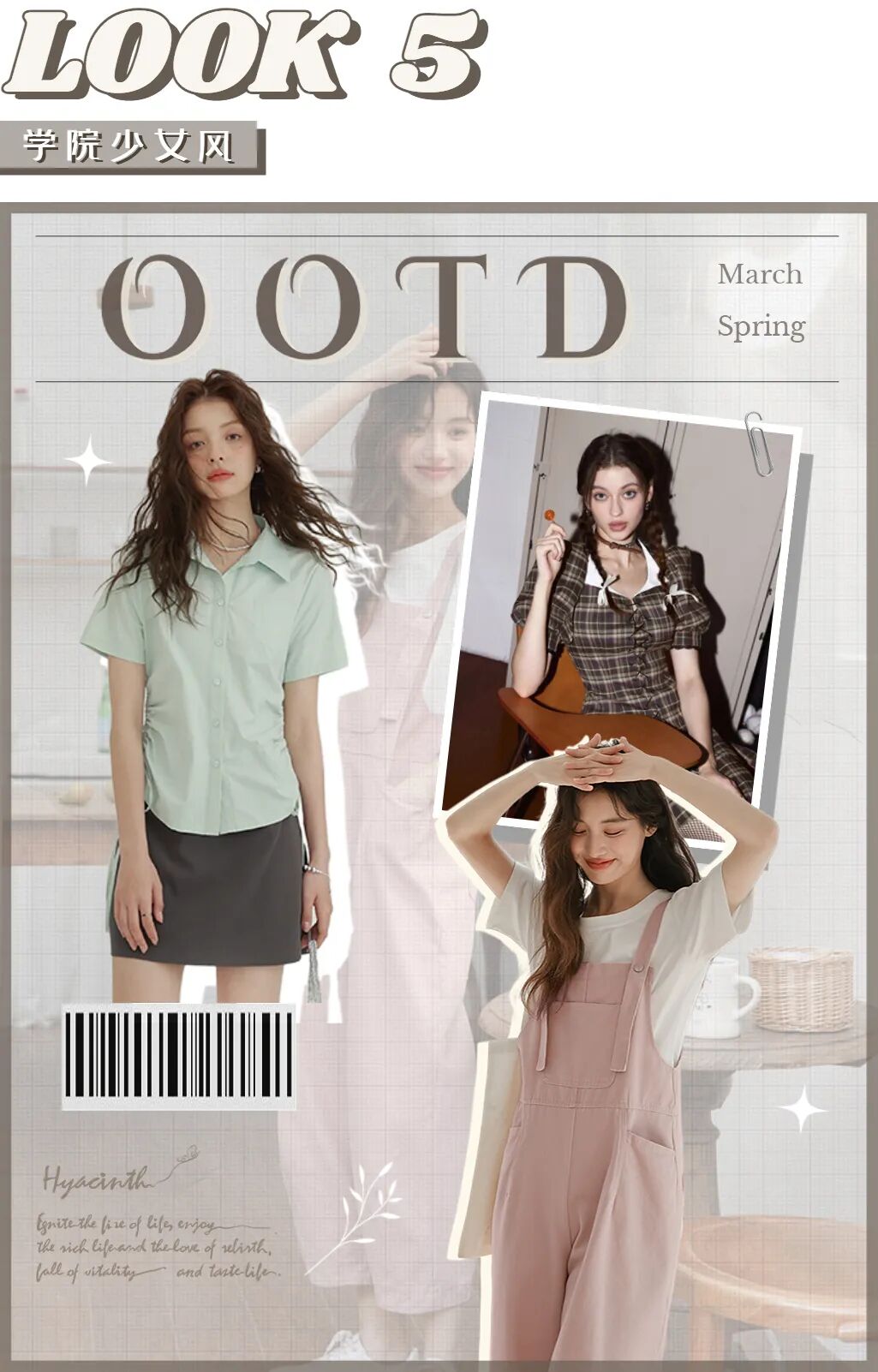 最后一套精准狙击了我的少女心,白色T恤+粉色背带裤的组合好少女,显白显嫩又减龄,永远穿不腻!