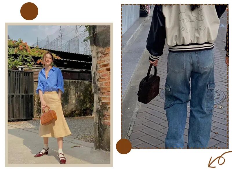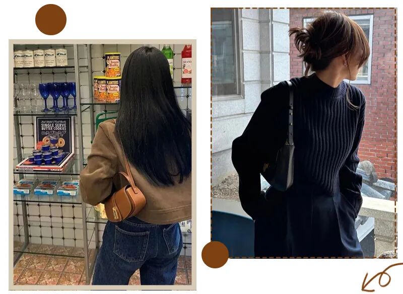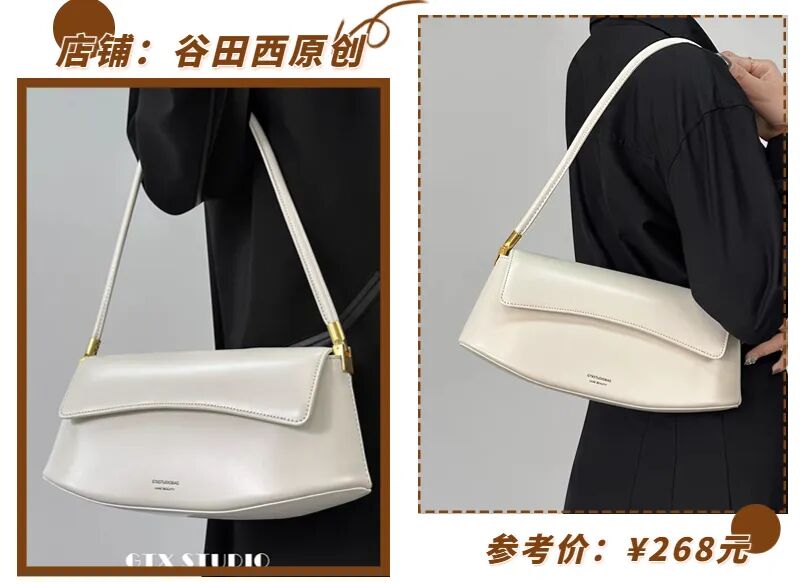 法棍包(包型小而扁)也算是腋下包中的一种,但更有复古摩登韵味,也是日常利用率很高的一款包型,想要通勤穿搭增加点复古与精致感的可以入一只。