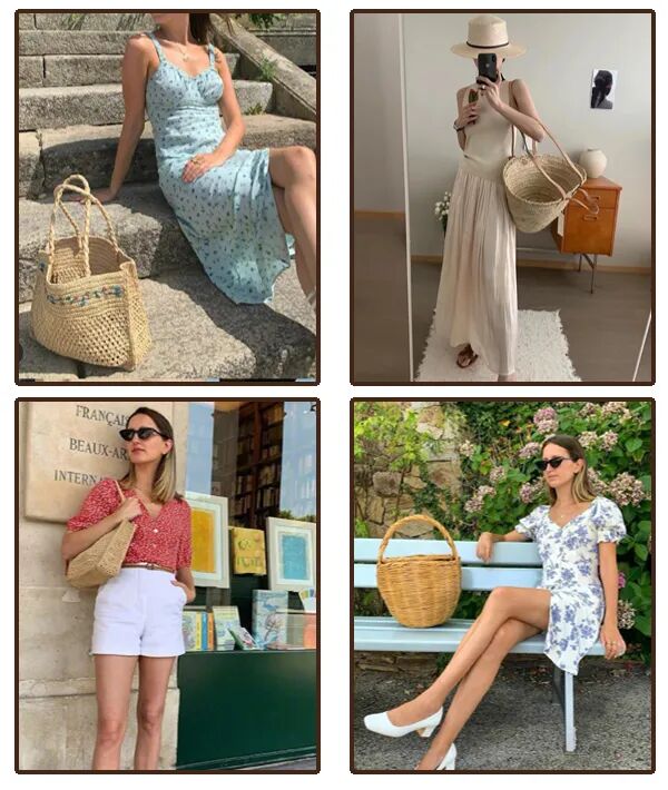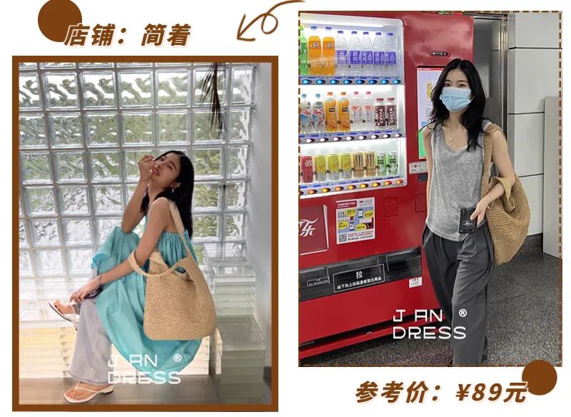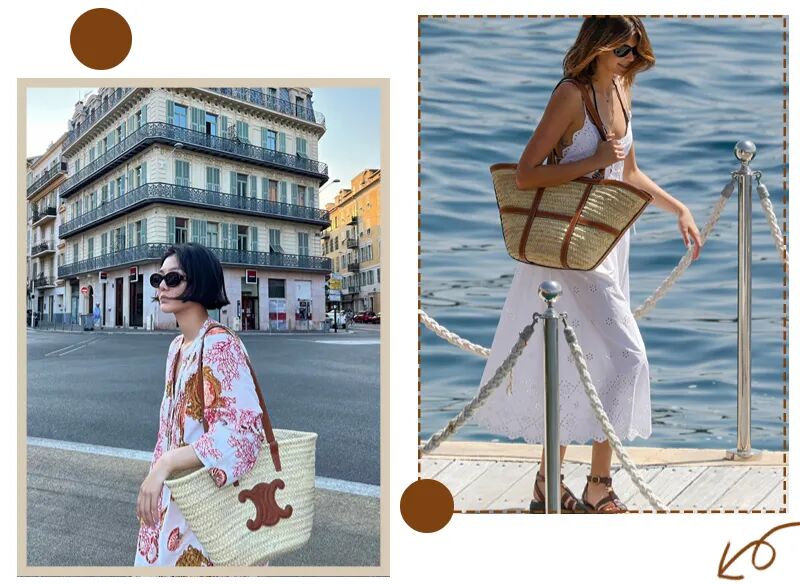 大size的菜篮子跟度假风小裙儿👗的适配性就是100%,就问谁出游还没背上编织包!