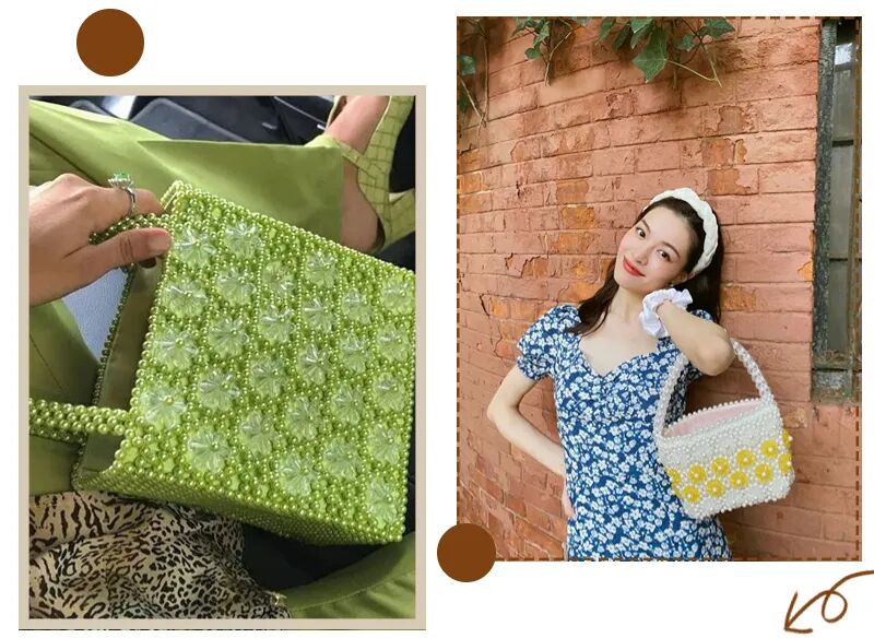 还有这种串珠材质的编织包也很让人眼前一亮!清新优雅又文艺范儿,搭配碎花小裙儿就是文艺校花~
