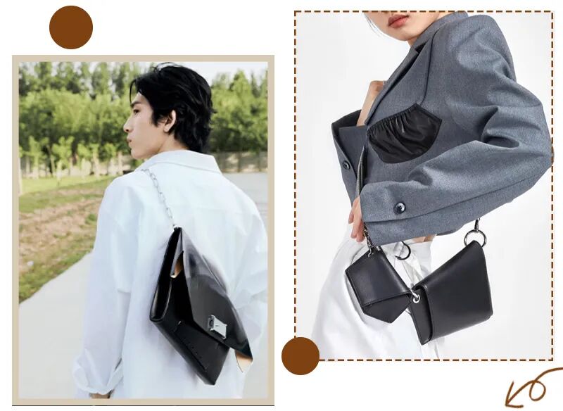 腋下包的优点之一就是长度刚刚好到腰线以上的位置,视觉上可以提高身体重心,无形之中达到显高的目的(小个子狂喜)。