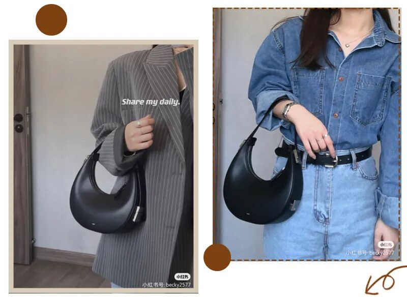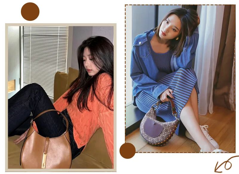月牙包跟不同材质组合也能碰撞出不一样的火花👇