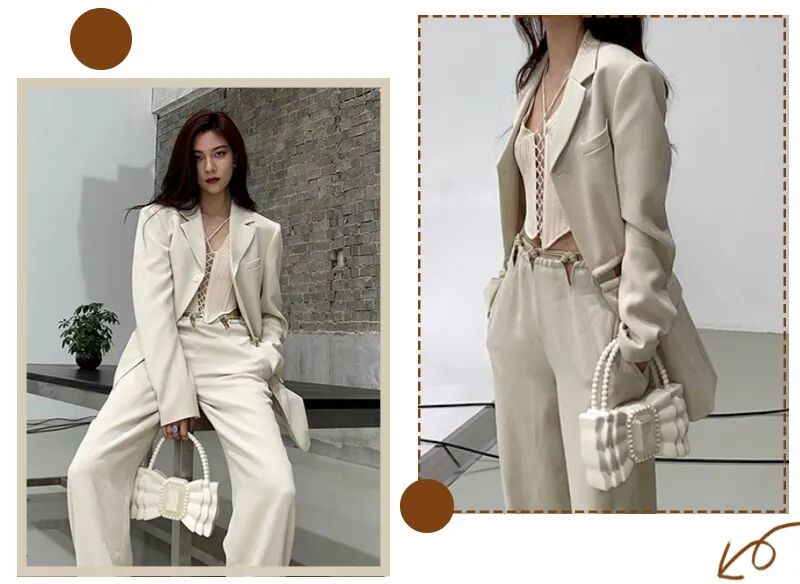 简洁纯色设计的月牙包带点复古时髦,可以很好地平衡严肃正经的穿搭,让整体风格柔和很多。