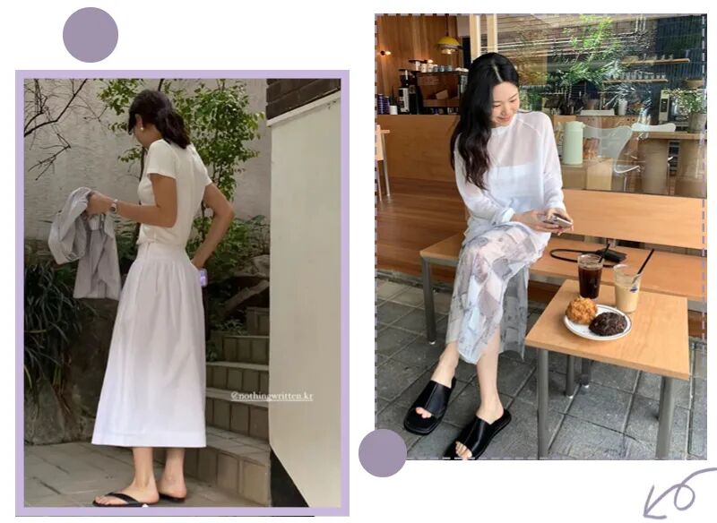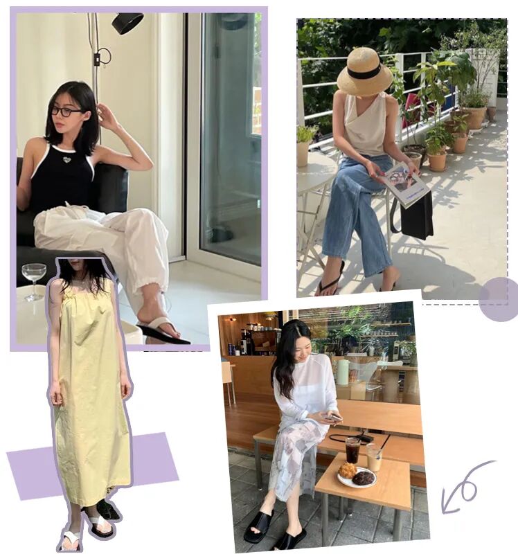 不过我夏天最爱的还得是拖鞋款凉鞋,不仅款式多样,时尚完成度也很高,一双能搭配通勤装、出游装,性价比相当高~