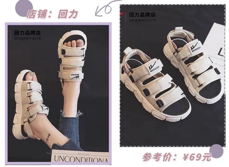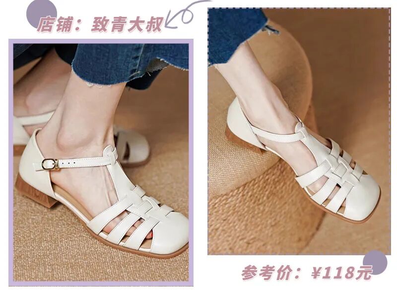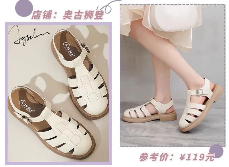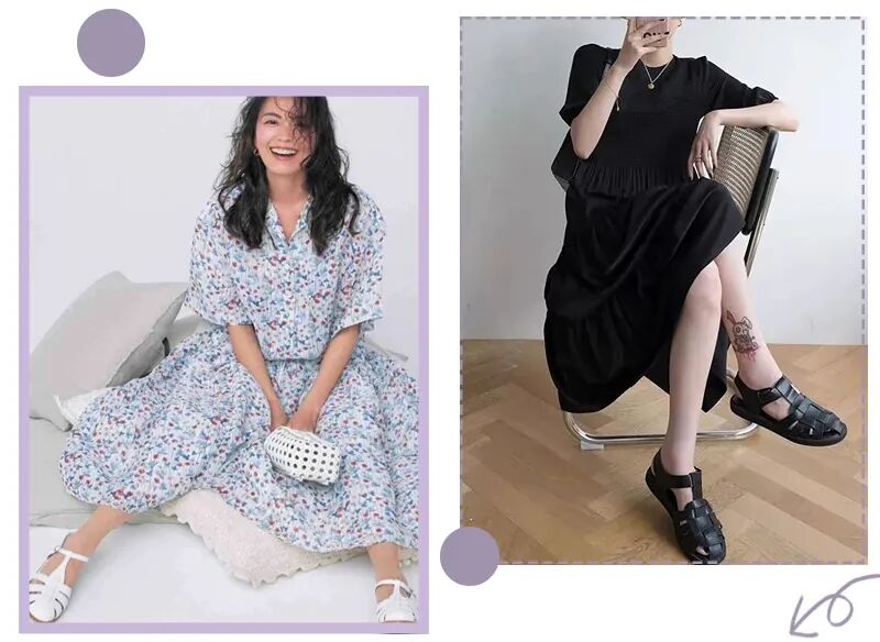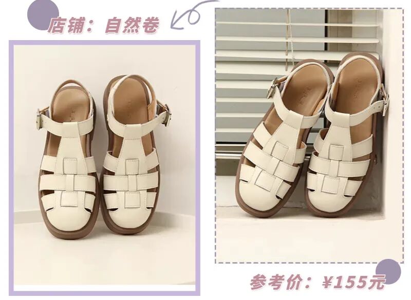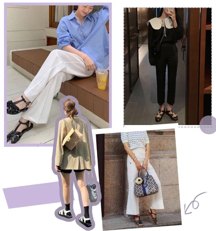 自带复古氛围的罗马凉鞋也是经久不衰,看起来丑萌丑萌的,却能carry超多穿搭,基本上什么风格都能消化得很好!