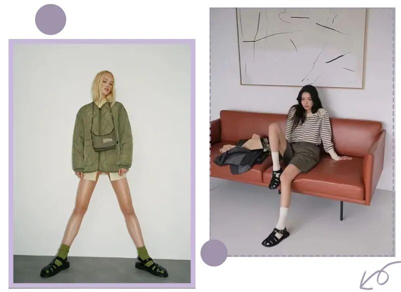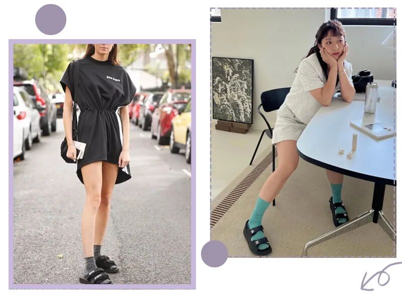 运动凉鞋搭配长袜也是一种时髦小心机,既能增加穿搭层次感,又能中和一身的柔性,增加帅气魅力~