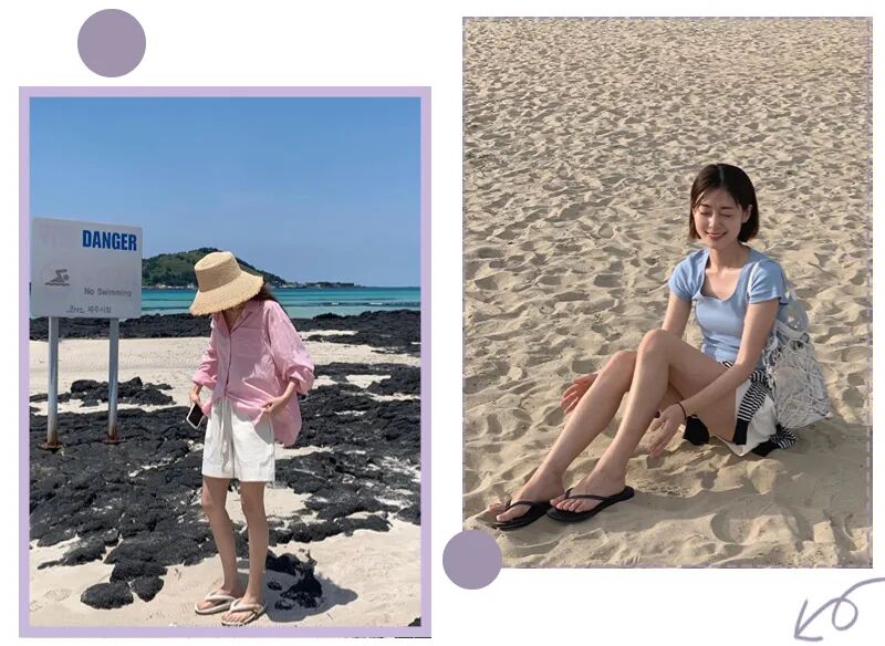拖鞋款凉鞋特别适合沙滩,给人一种随性惬意的feel,看着都很治愈。
