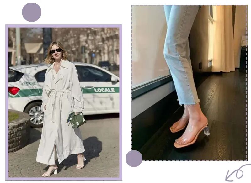 透明无痕迹的PVC凉鞋也给了穿搭更大的发挥空间,再大胆、抓马的穿搭也能与PVC凉鞋融合得很好👇