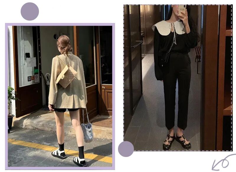 点睛之笔就是get一双与衣服同色系的短袜,更有层次感,时髦精必备~