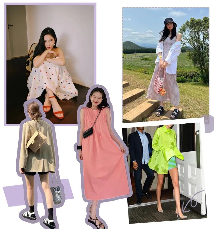 在穿搭方面,也很简单随性。match短裤和T恤或者短裙、连衣裙都可以。款式可以选择经典的黑白配色,性感热辣中带着点端庄。