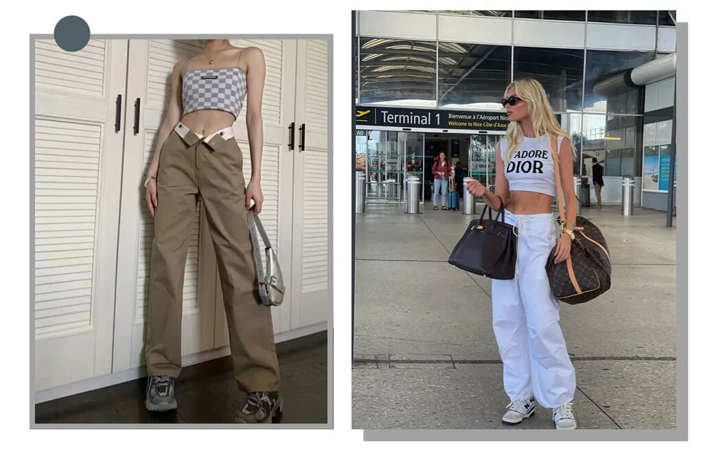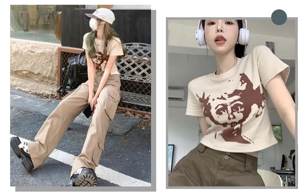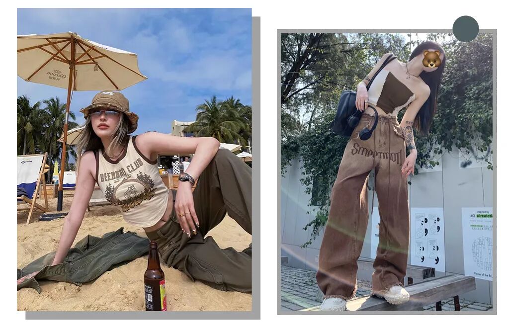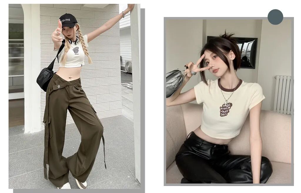 宽松的工装裤用来搭配正肩短上衣简直是美式辣妹必备,休闲又舒适,非常适合下半身微胖的宝子。
