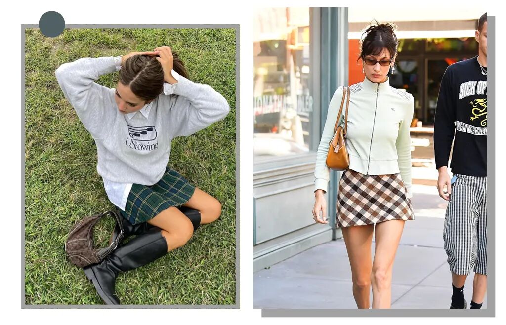 尤其是最近早晚还有温差,上身穿一件长袖Polo衫,下面配一条格纹A字裙,不论走在哪里都像是在美式街头被抓拍的明星~