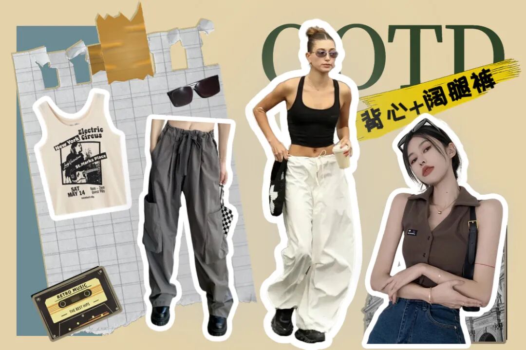 胯宽屁股大的姐妹一定要试试背心+阔腿裤的穿搭,上短下长就非常显比例,随便凹一凹都是美式辣妹一枚!