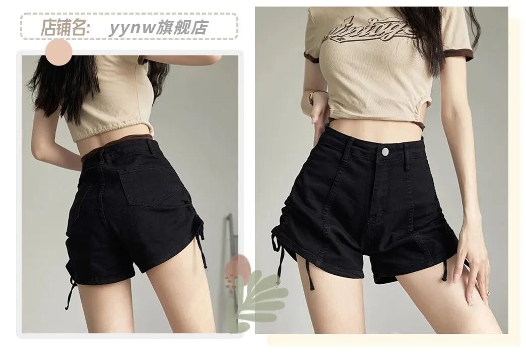 除了蓝色的牛仔短裤,黑白色更是极简百搭。不论是紧身还是宽松的版型,选择高腰款,都能凸显三七分好身材!