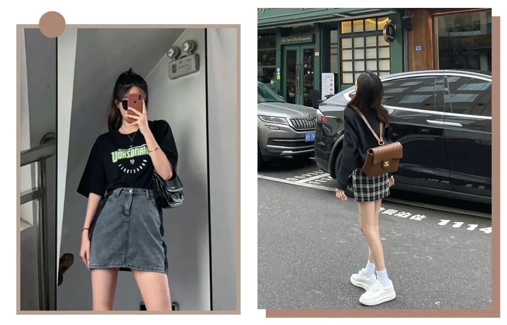如果说百褶裙还稍微跟成熟的姐姐不适配,那A字裙就是适合所有风格的百搭短裙。不管是甜酷校园还是轻熟职场,都能轻松拿下。