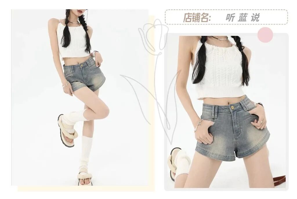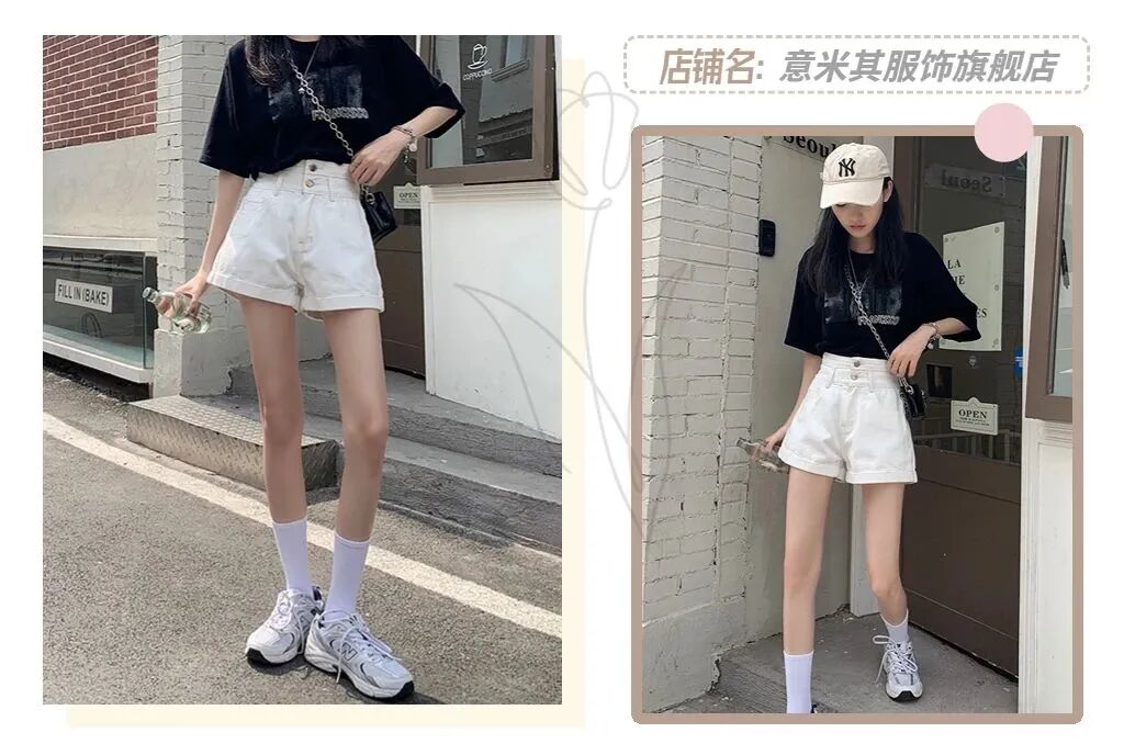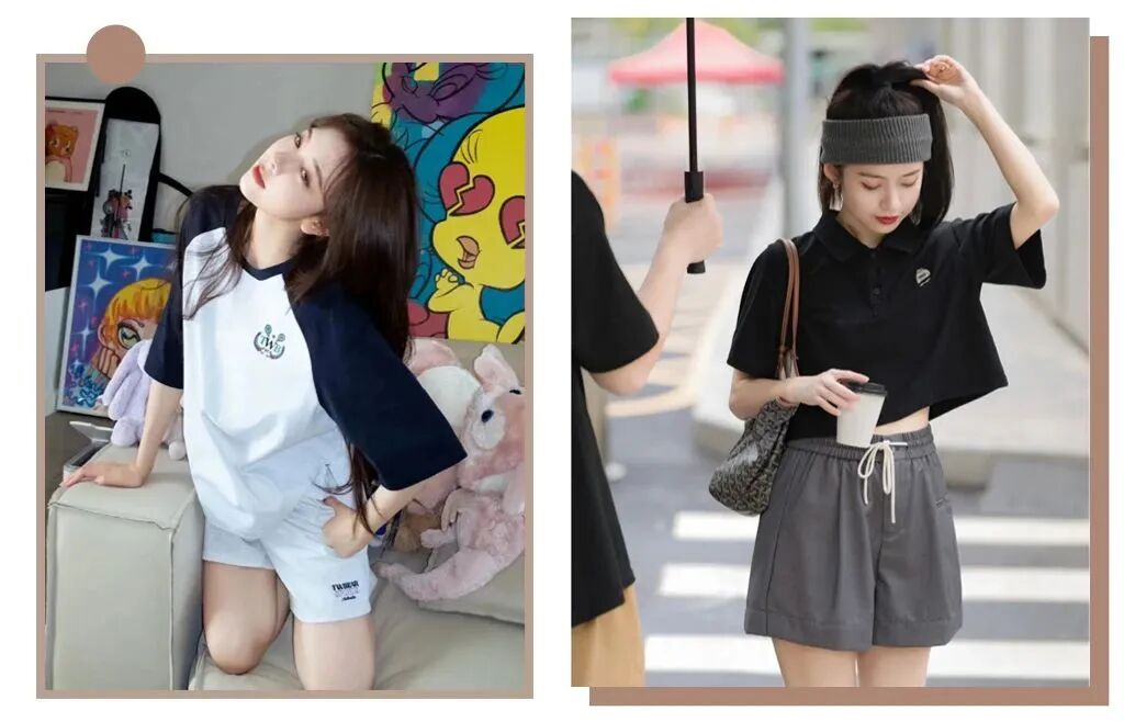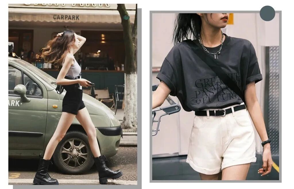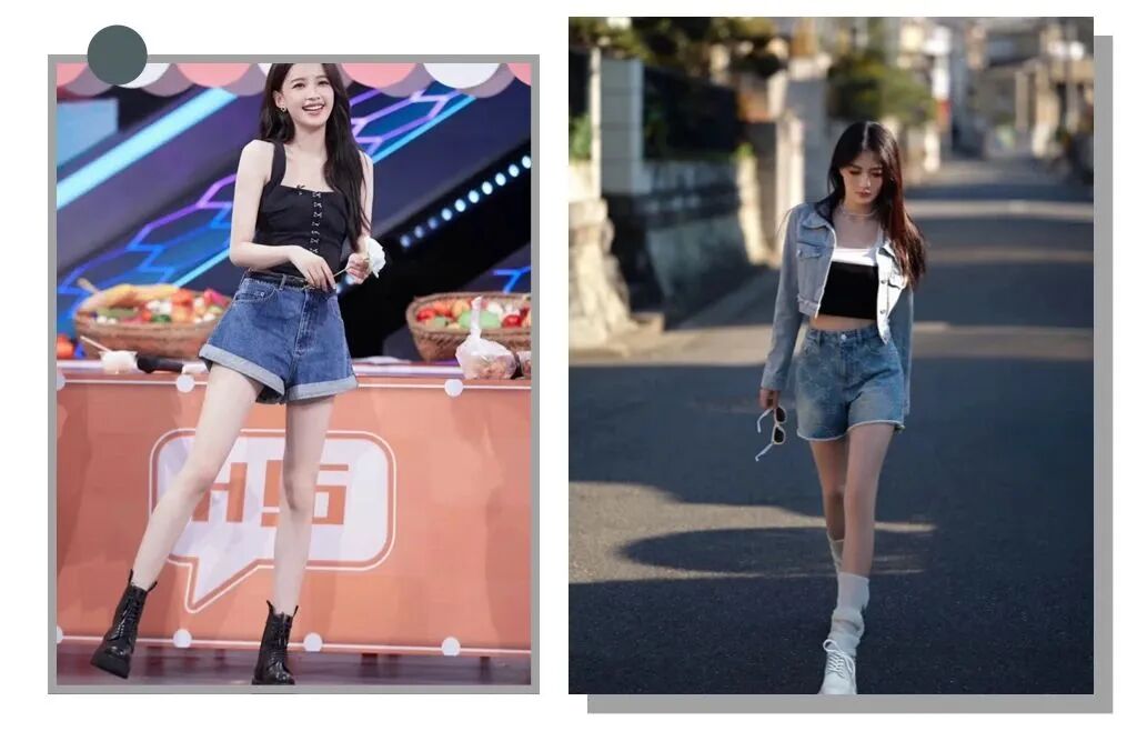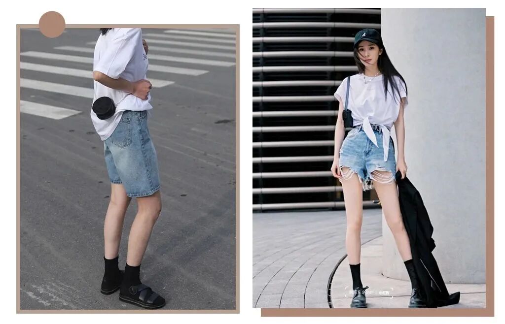 五分款的牛仔短裤更加日系休闲,毫不费力拿捏时尚度;破洞毛边更偏女团辣妹风格,两者都是简单搭配一件白T就好看的不行。