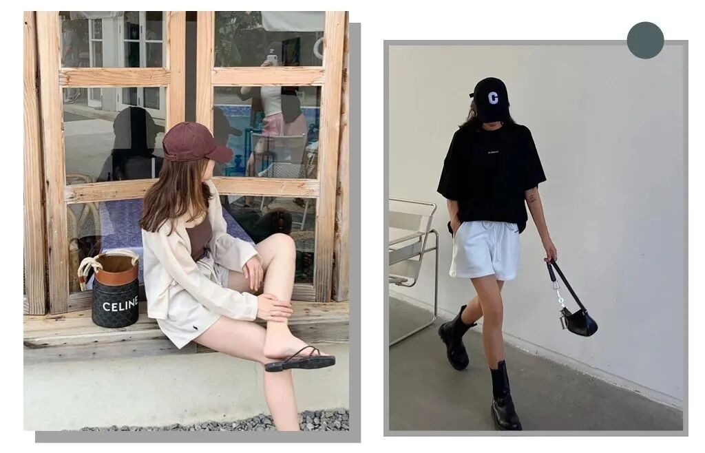 不管是运动打扮还是出街look,运动短裤绝对是最实穿的选择,搭配一顶棒球帽,美式街头要素拉满!