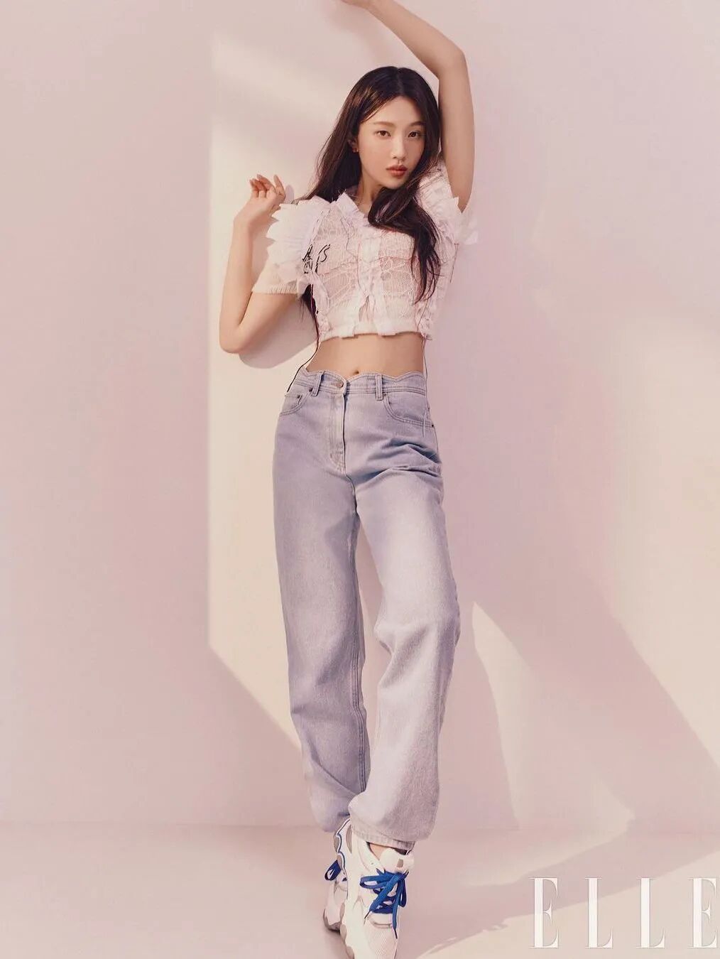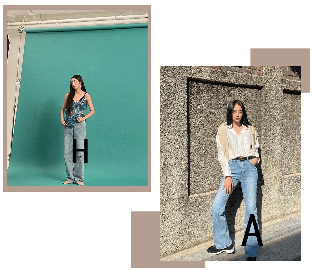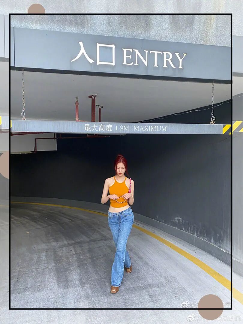 有上面问题的宝子我更推荐版型硬挺的牛仔裤or直筒裤,能把腹部、胯骨修饰的很好,一点也不用担心肉肉被挤出来。