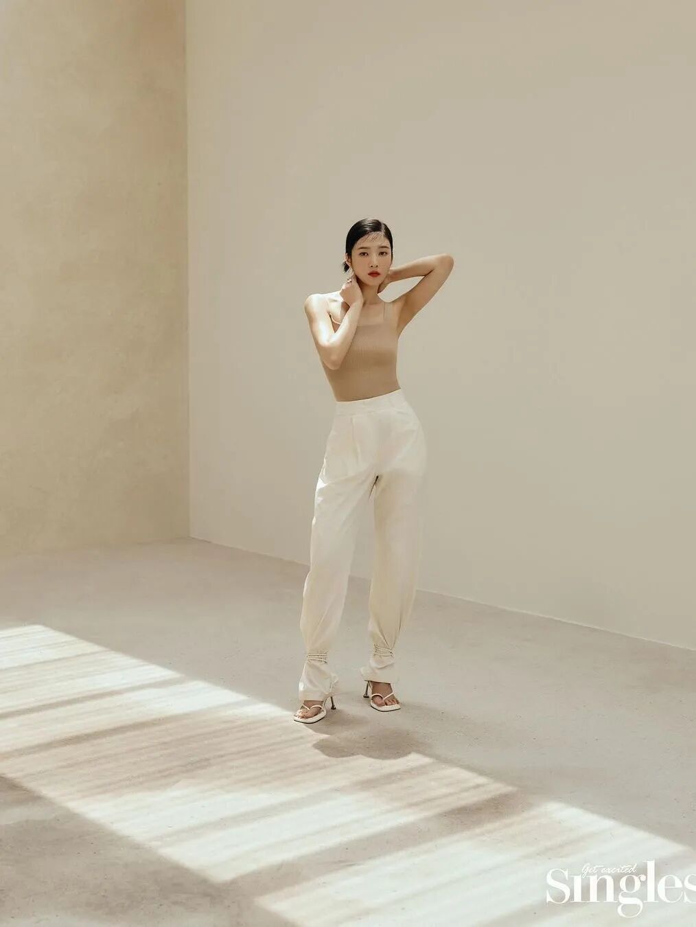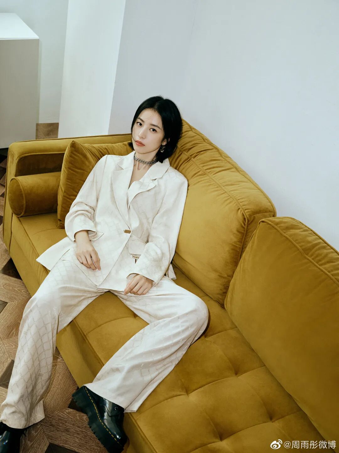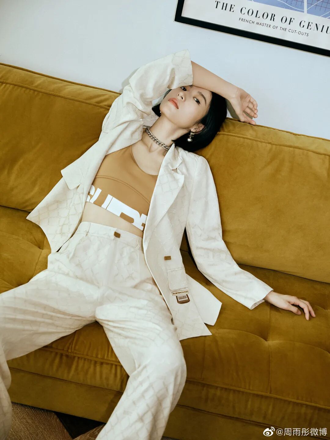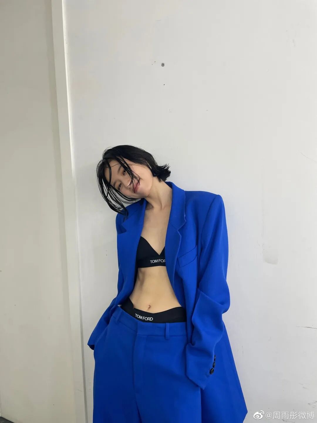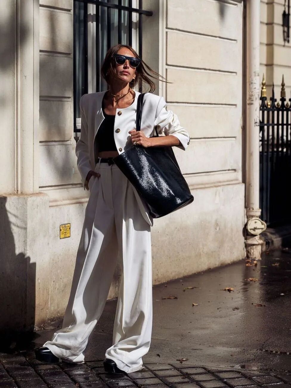 垂坠感十足的西装裤加上干净利落的剪裁上身就贵气十足,最简单的穿法当然就是成套穿,属于不费力就能赢很大的look。