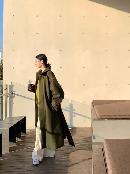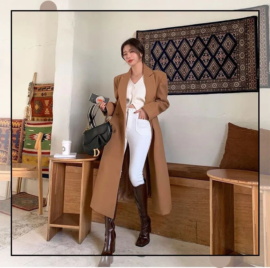 内搭选择all white外套一件棕色大衣,鞋子可以选择大衣同色系的方头靴,干练有气质的满分秋冬穿搭get✔️