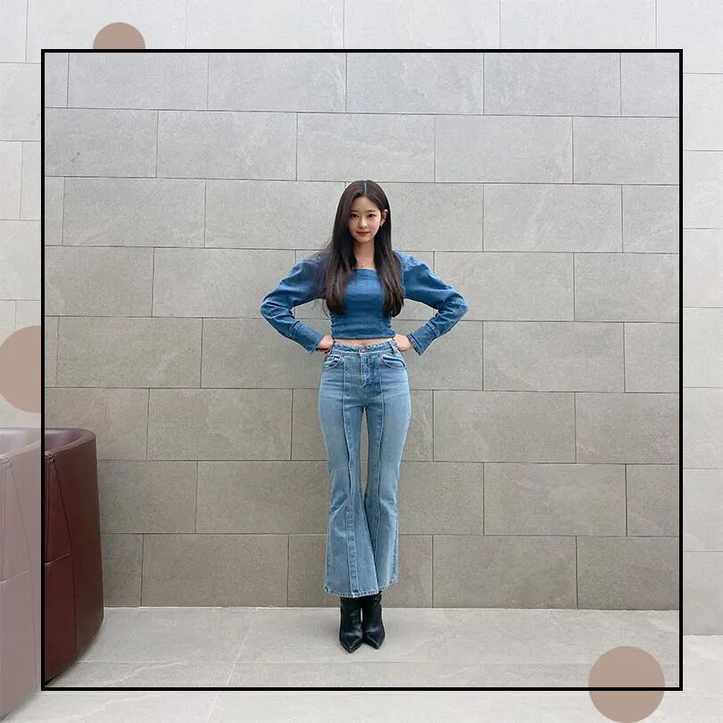 喇叭裤的大腿处会比较修身,能很好地展现臀部线条。而膝盖处略微宽松的设计也使得膝盖外翻的问题得到修饰,同时还能延伸腿部线条,让小腿在视觉上更加细长。