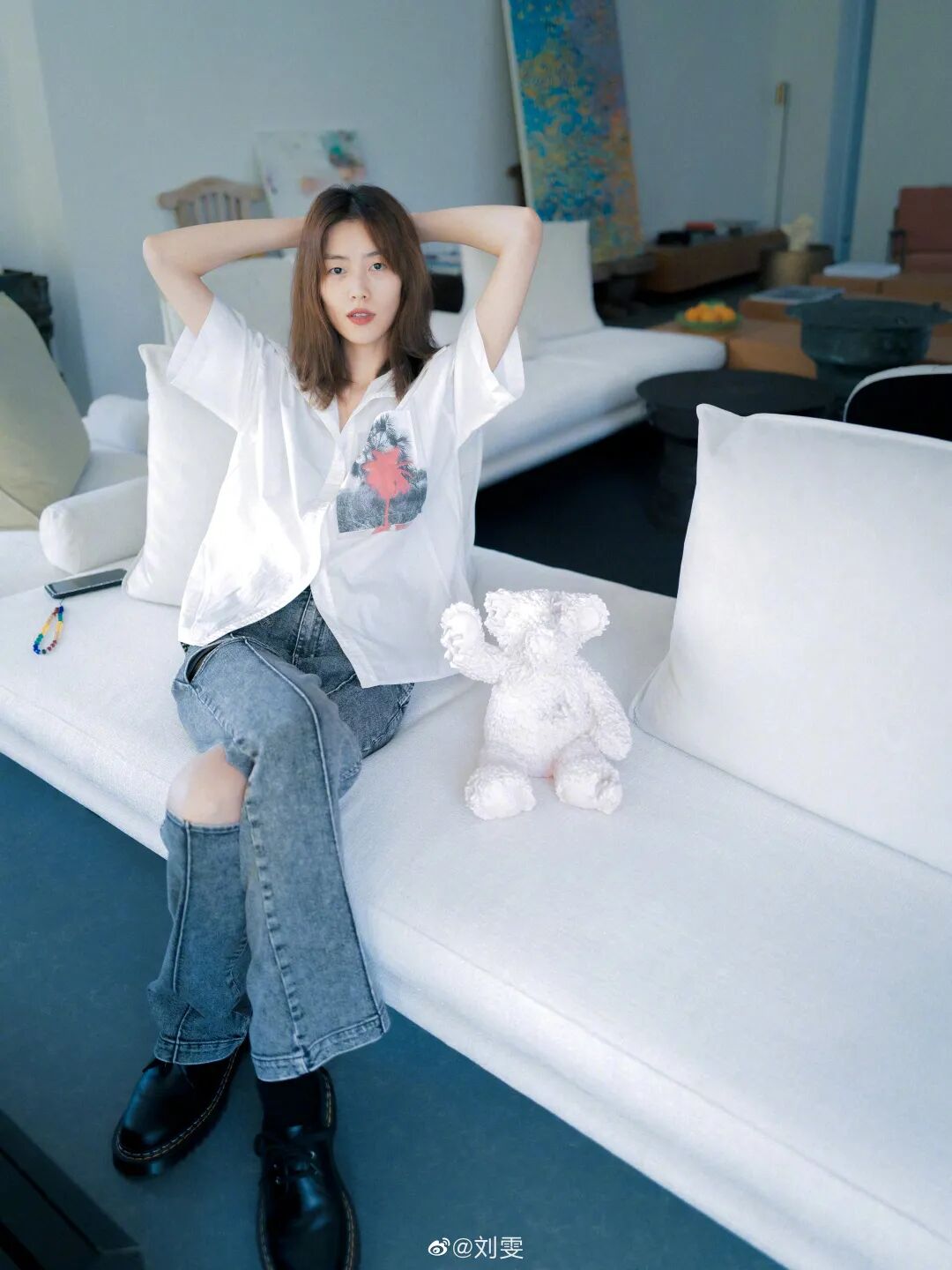 咱们大表姐刘雯就是直筒裤的忠实用户,私服look很多都是用直筒裤来完成的,把她原本较好的身材比例衬托的更加完美。