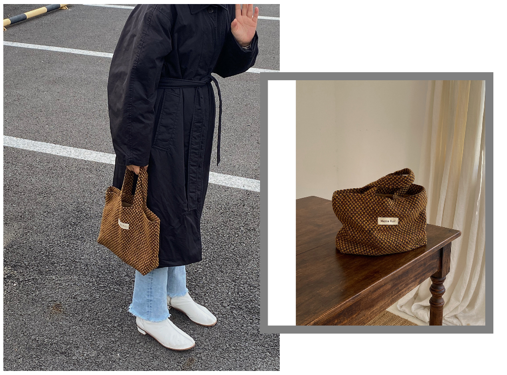 我个人还很喜欢这款编织混色羊毛手拎包,相对于我的绿色款,更适合秋冬季节。