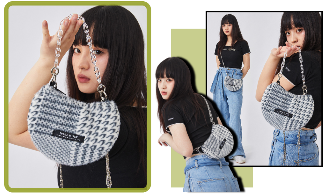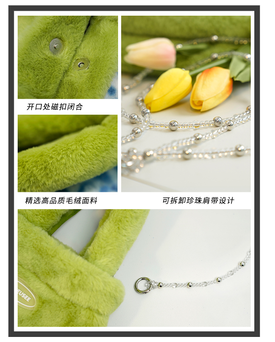 这款就是超级适合秋冬的毛茸茸款!包带的长度也是恰好,可以当做腋下包也能够斜跨。