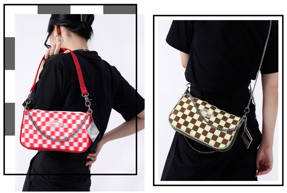 像今年比较流行的棋盘格元素,以及各种腋下包款式。